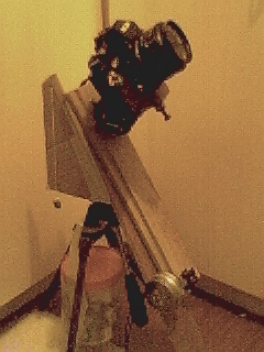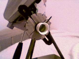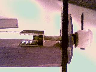 Para efetuar a rotação do parafuso podemos usar o dedo, girando o parafuso em sincronismo com um relógio. Não há necessidade de muita precisão neste movimento, basta não errar por mais de 10 segundos pois para fotos com lentes curtas (55mm ou menos), que são mais adequadas a este tipo de mecanismo, podemos manter a plataforma parada por até 10 segundos antes que as estrelas comecem a produzir um risco no negativo (veja fórmulas e régua de calculo na seção "Fórmulas" do menu acima). A plataforma do Diniz (veja link abaixo) é motorizada com um motor de timer de lava-louça ou lava-roupa, eu optei por uma sem motorização para poder levá-la a qualquer lugar sem necessidade de energia elétrica.