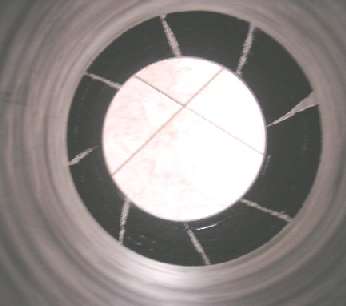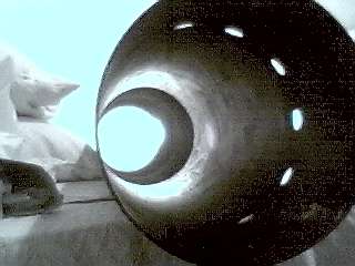A outra turbulência é causada pela troca de ar por convecção entre o interior e o exterior do tubo. Esta troca também se deve à "diferença de temperatura". Todas as partes internas do telescópio (espelho, célula, tubo...) carregam a temperatura do local onde estavam armazenadas para o ambiente externo que geralmente está em outra temperatura. Se o telescópio estava mais quente (se mais frio também ocorre porém em menor intensidade) que o exterior forma-se uma corrente de ar quente que sobe pela lateral interna, na linha superior do tubo. Em certas condições isto pode ser visualizado simplesmente observado estrelas a 45° de altura e tapando hora a metade superior da boca do tubo, hora a metade inferior. Nesta última posição percebemos uma piora na imagem pois estamos vendo através desta camada de ar que se desloca subindo pela linha superior do tubo. Nestes casos o tubo "apertado" piora a situação (é o meu caso), podemos usar tubos com maior folga (maior diâmetro) para afastar esta camada de ar da linha de entrada da luz ou simplesmente usar um "truss tube" que praticamente elimina este problema. Uma solução intermediária são os furos que fiz no meu tubo e que também ajudam a minimizar o primeiro tipo de turbulência.