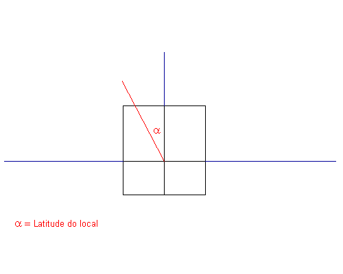 Trace, a partir do ponto de cruzamento das linha, uma linha que forme um ângulo igual a Latitude do local com a linha vertical.