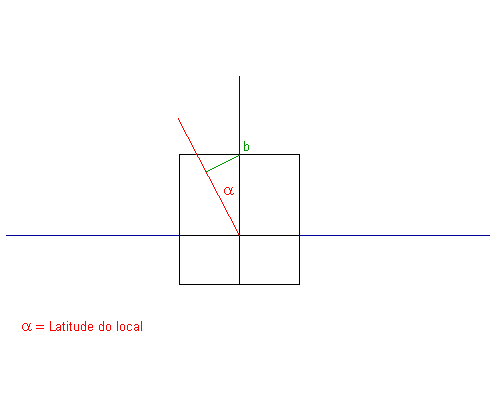 Trace uma linha que, passando pelo ponto "b" atinja a linha vermelha com um ângulo reto. (Dica: use o esquadro para isso).