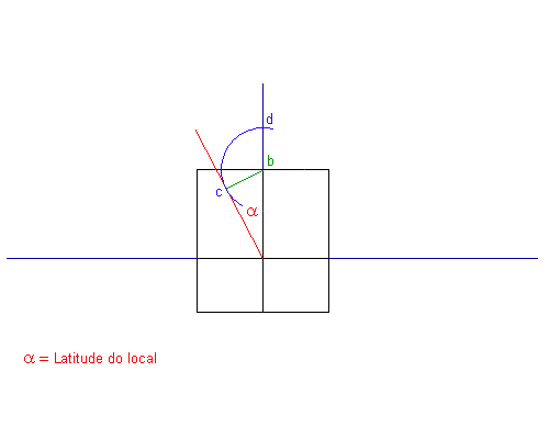 Com o compasso no ponto "b", trace um arco de círculo até encontrar a linha vertical no ponto "d".