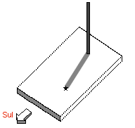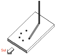 4 - Fixe a tábua orientando o lado mais distante do gnomone para o sul. Sugestão: faça marcas no local para poder retirar a tábua ou coloque-a sempre no mesmo canto de uma lajota, por exemplo.