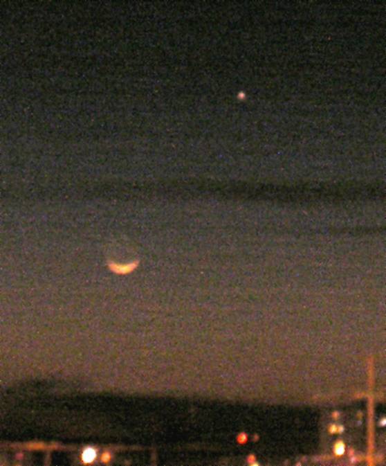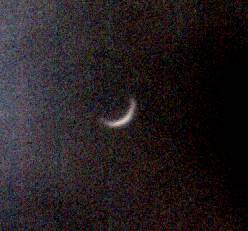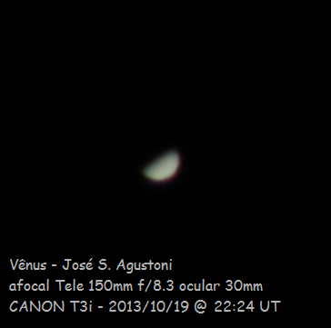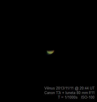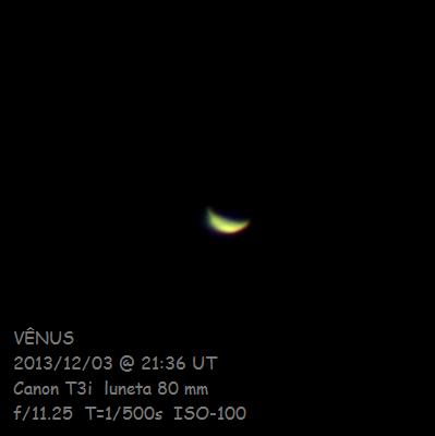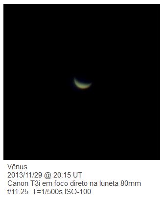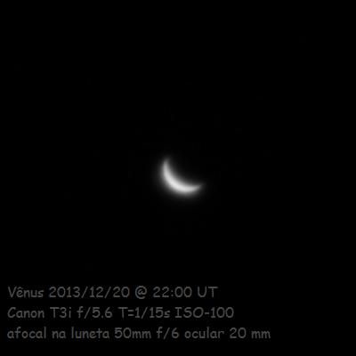 Obs.: o contraste foi aumentado para melhor visão do crescente de Vênus, isso fez o céu azul se tornar negro.