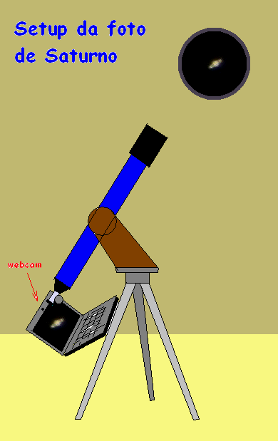 . . . .![]() Saturno ocular Orion Plössl 10 mm (90x) | . . . .![]() setup para fotografar com webcam do notebook |