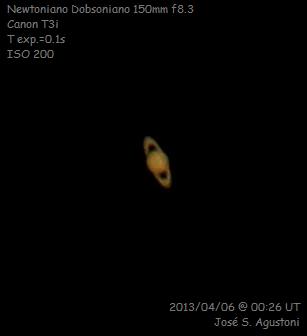 Simulação com Stellarium Telescópio 150mm f/8.3 (63x e 208x) Objeto (mag. dificuldade) Saturno (0.7) Titã (8.8 facílimo) Rhea (10.2 fácil) Thetys (10.7 fácil) Dione (10.8 médio) Iapetus (11.7 fácil) Enceladus (12.2 difícil)