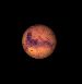 ![]() Foto com webcam Logitech em foco direto no telescópio D=180mm F=1200mm, registrada com K3CCDTools e tratada com Registax. Notar calota polar sul no topo da imagem e logo à direita a mancha clara de Hellas surgindo no limbo. A faixa escura são os Mare Chronium, Mare Sirenum, Mare Cimmerium e Mare Tyrrhenum.